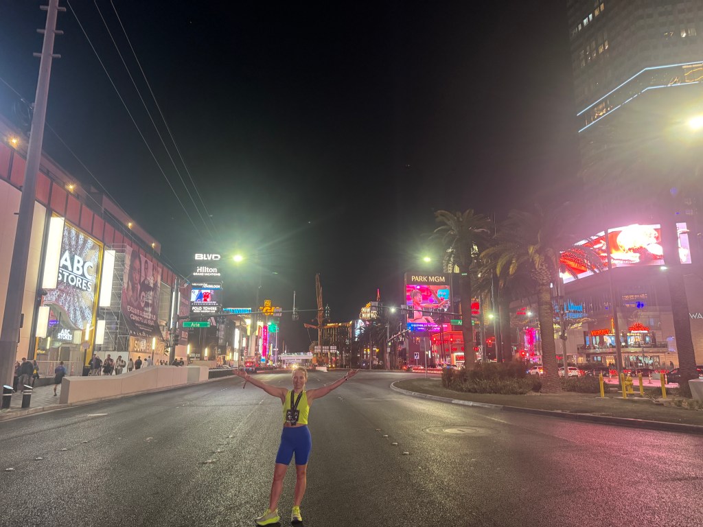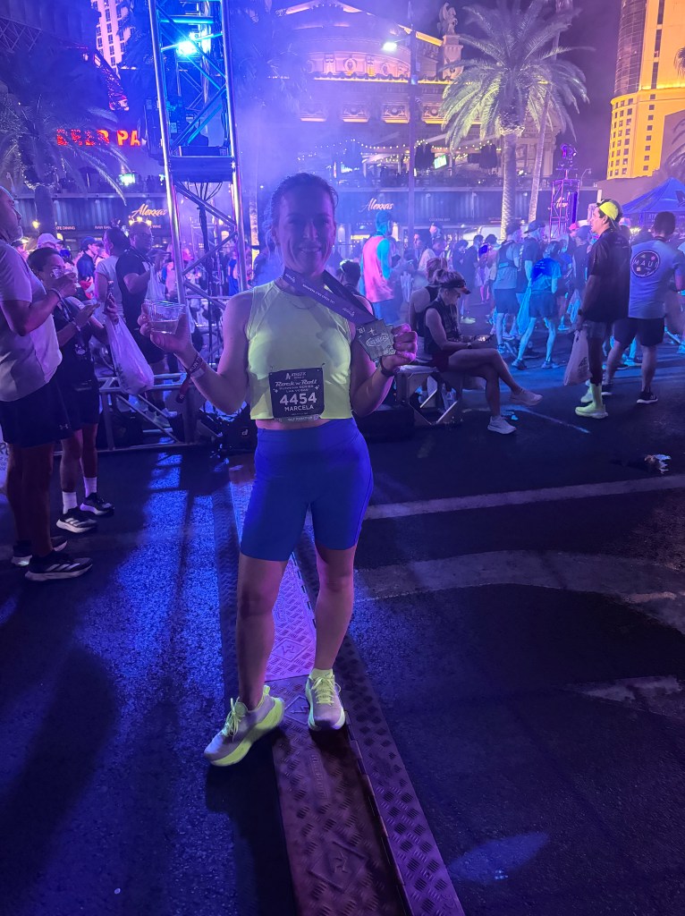 Running through the heart of Las Vegas—past iconic casinos, under the glow of the Eiffel Tower at Paris, and alongside the fountains of the Bellagio—was surreal. The strip belonged to runners only that evening and all the hotels seemed longer and bigger for some reason 🙂 It felt like I was flying, fueled not just by training, but by the incredible spirit of the city.